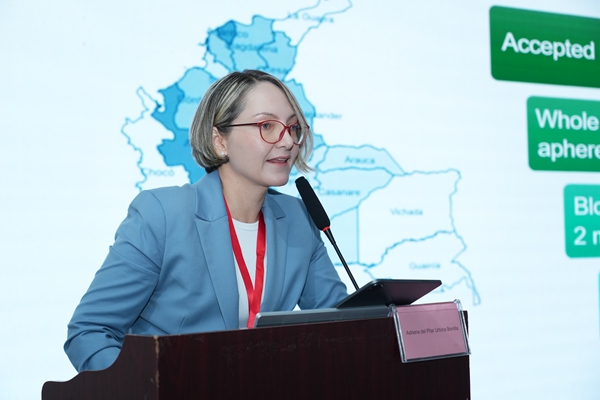 哥伦比亚红会血库医学主任及罗萨里奥大学生物医学科学系医学与健康科学学院职业副教授Dr. Adriana Urbina发表了《哥伦比亚血筛的方法、现状和未来趋势》主题报告。她从哥伦比亚医疗制度及血站分布入手,探讨了当前血筛项目的筛查方法及其挑战,强调了血筛核酸检测具有优越性,能广泛识别病原体突变株,降低感染风险,确保血液安全。同时,她提出了利用分子方法学筛查虫媒病毒等创新思路,并对W88优德生物分子血筛检测方案高度赞赏。